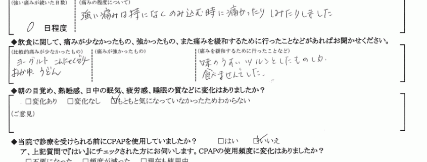 Q.術後、強い痛みは何日程度続きましたか?また、痛みの度合いについて具体的なご意見をお聞かせください。