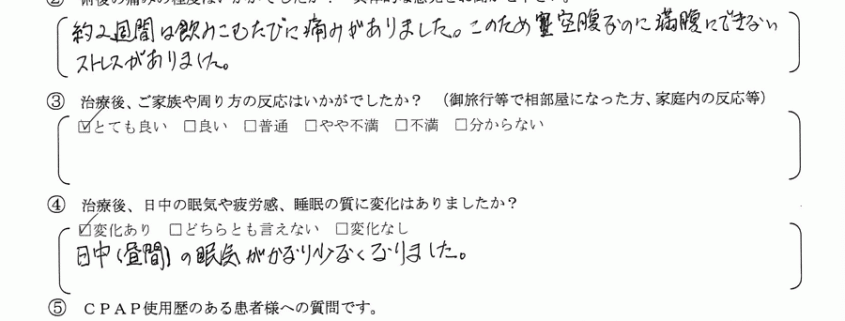 ウ. いびきの音以外で、術後気になる点はございますか?