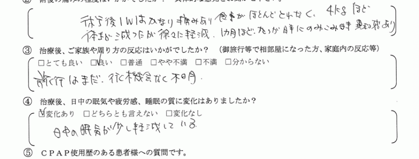 術後の患者様の感想 No.012