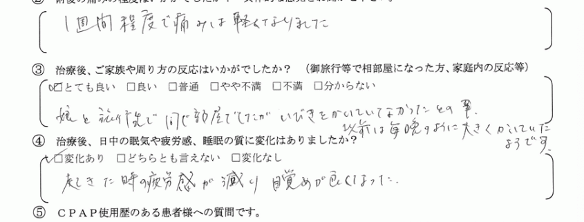 術後の患者様の感想 No.014