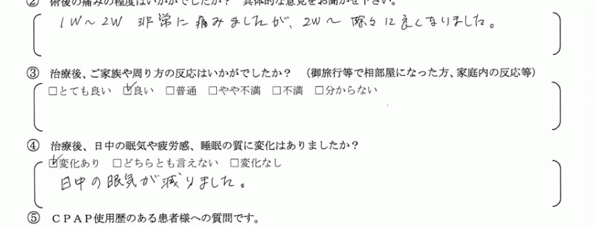 ウ. いびきの音以外で、術後気になる点はございますか?