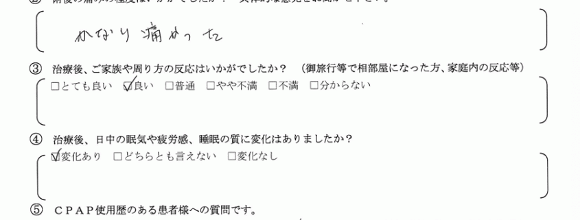 ウ. いびきの音以外で、術後気になる点はございますか?