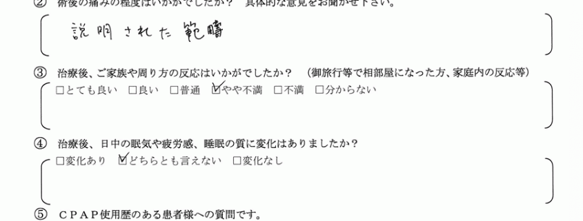 ウ. いびきの音以外で、術後気になる点はございますか?