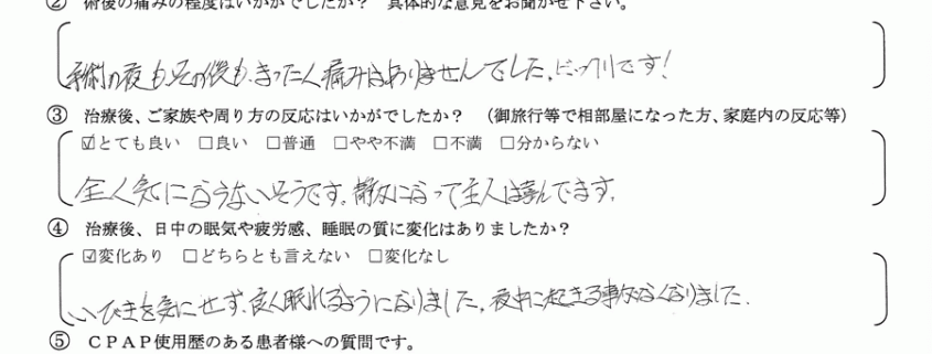 術後の患者様の感想 No.038