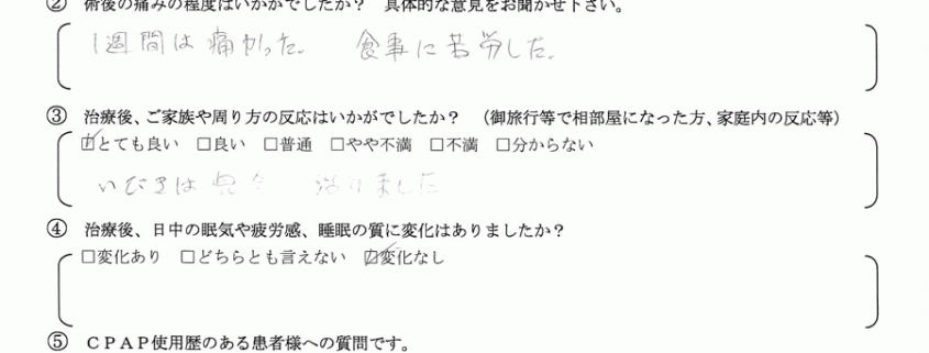術後の患者様の感想 No.043