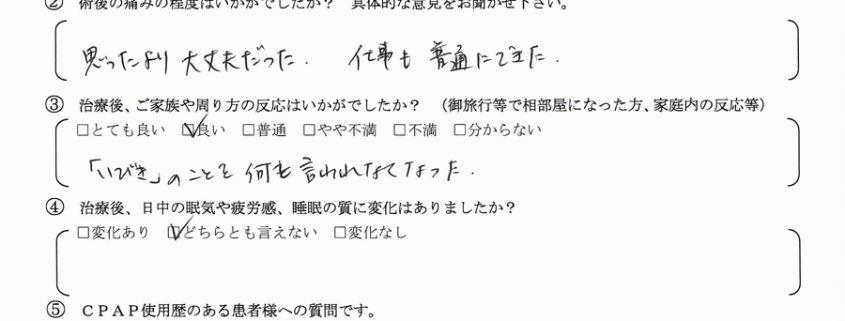 ウ. いびきの音以外で、術後気になる点はございますか?