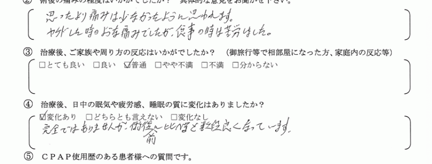 Q.診療(治療)を受けられての感想をお聞かせ下さい。
