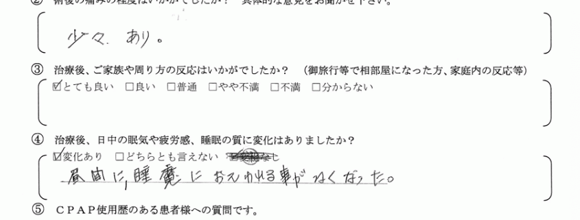 術後の患者様の感想 No.072