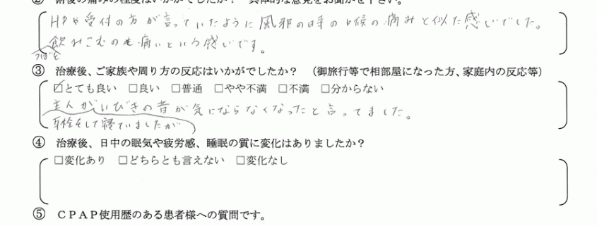 術後の患者様の感想 No.083
