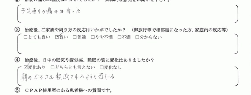 Q.診療(治療)を受けられての感想をお聞かせ下さい。