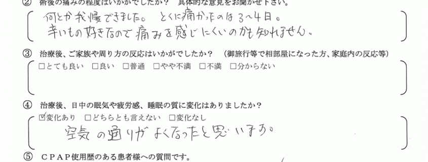 術後の患者様の感想 No.089