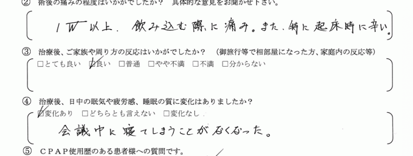 Q.CPAP使用歴のある患者様へ質問です。