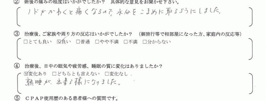 Q.CPAP使用歴のある患者様へ質問です。