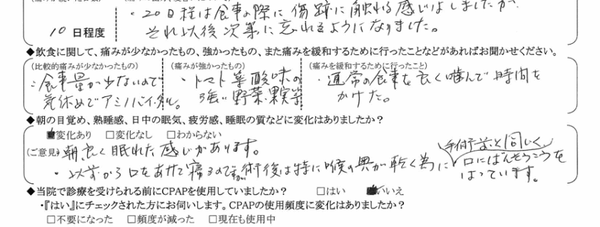術後の患者様の感想 No.1004