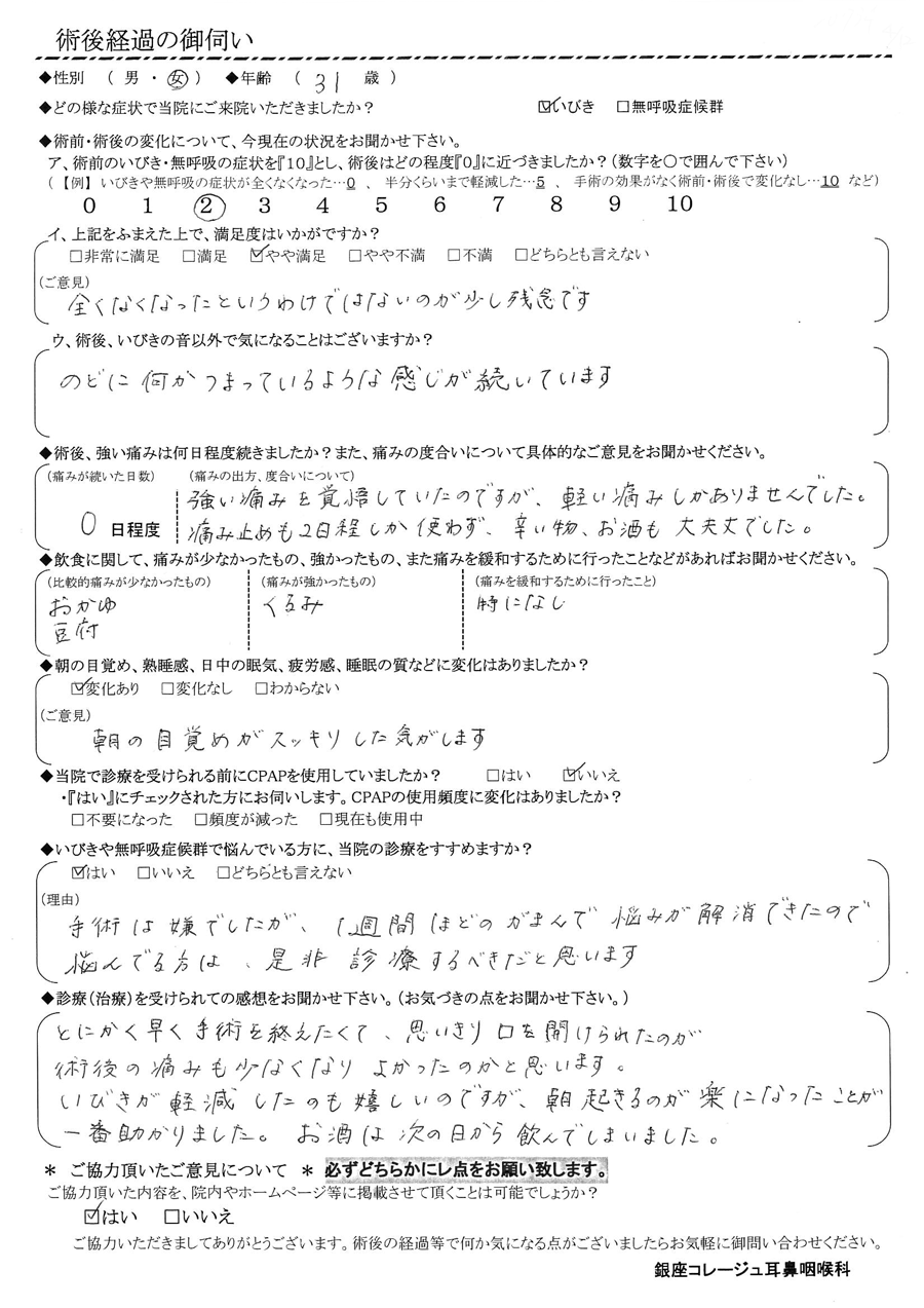 術後の患者様の感想 No.1015