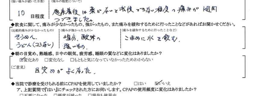 術後の患者様の感想 No.1020
