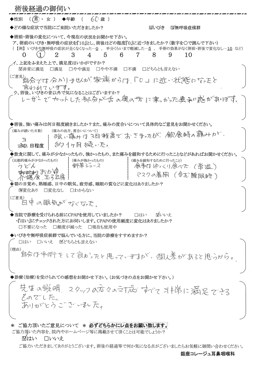 (ご意見) 自分では分かりませんが、家族からは「0」になったと言われています。