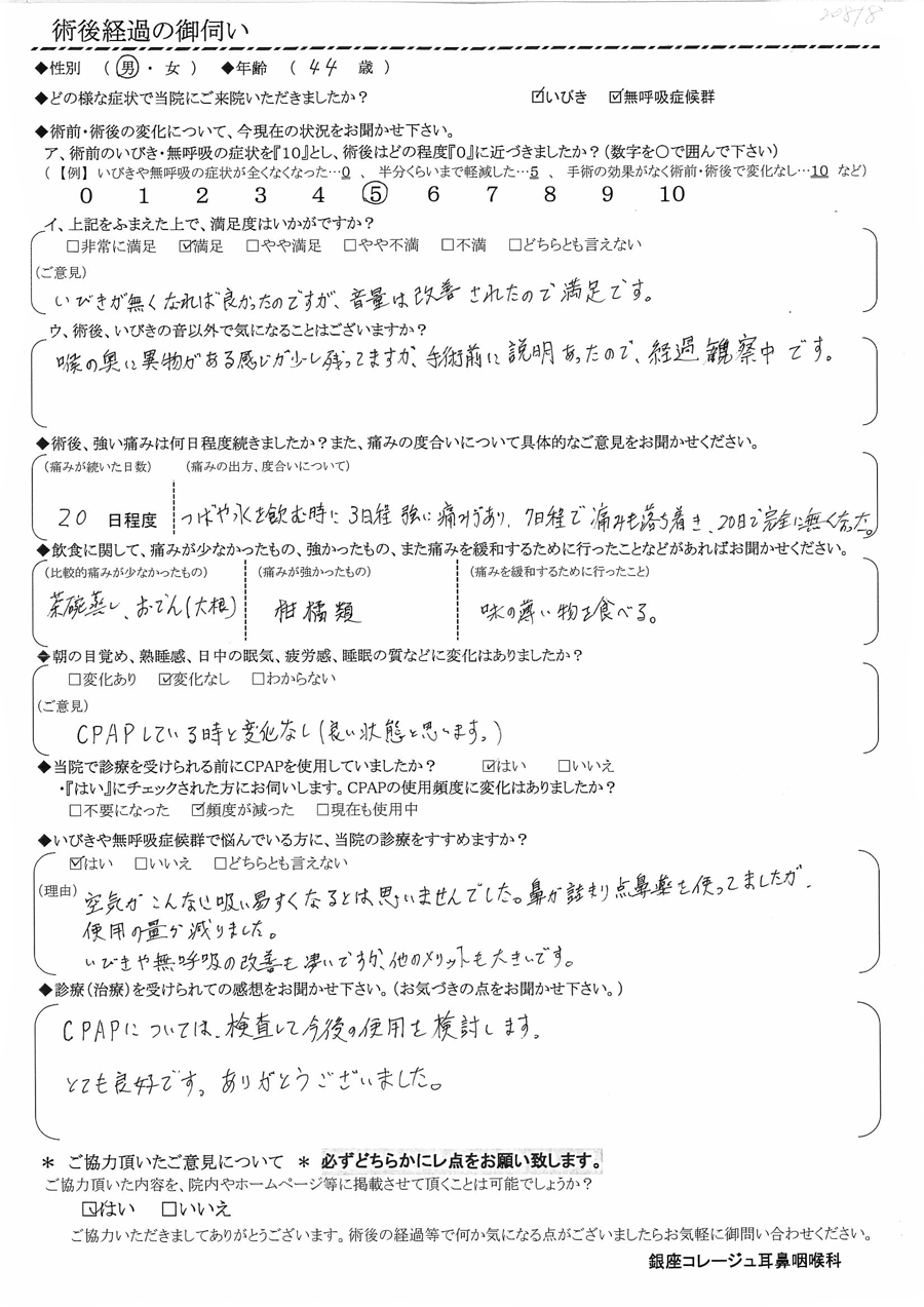術後の患者様の感想 No.1038