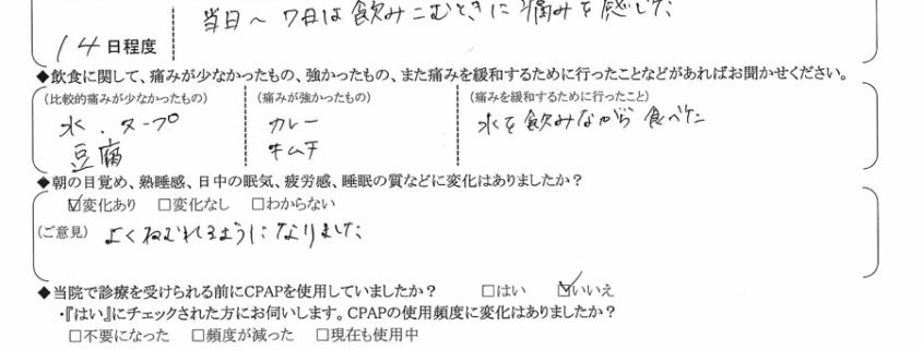 術後の患者様の感想 No.1040
