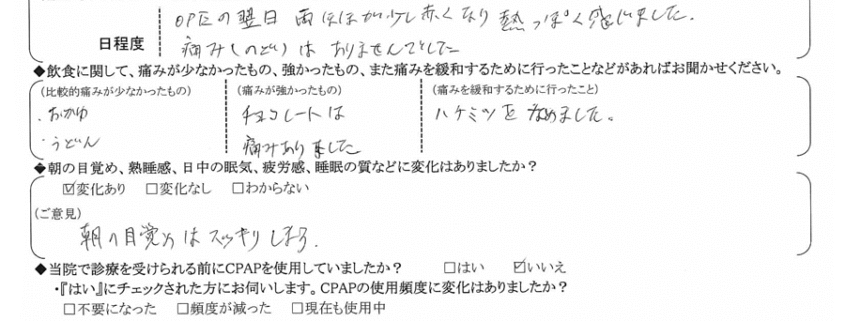 術後の患者様の感想 No.1067