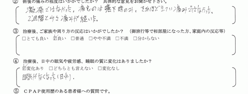 術後の患者様の感想 No.109