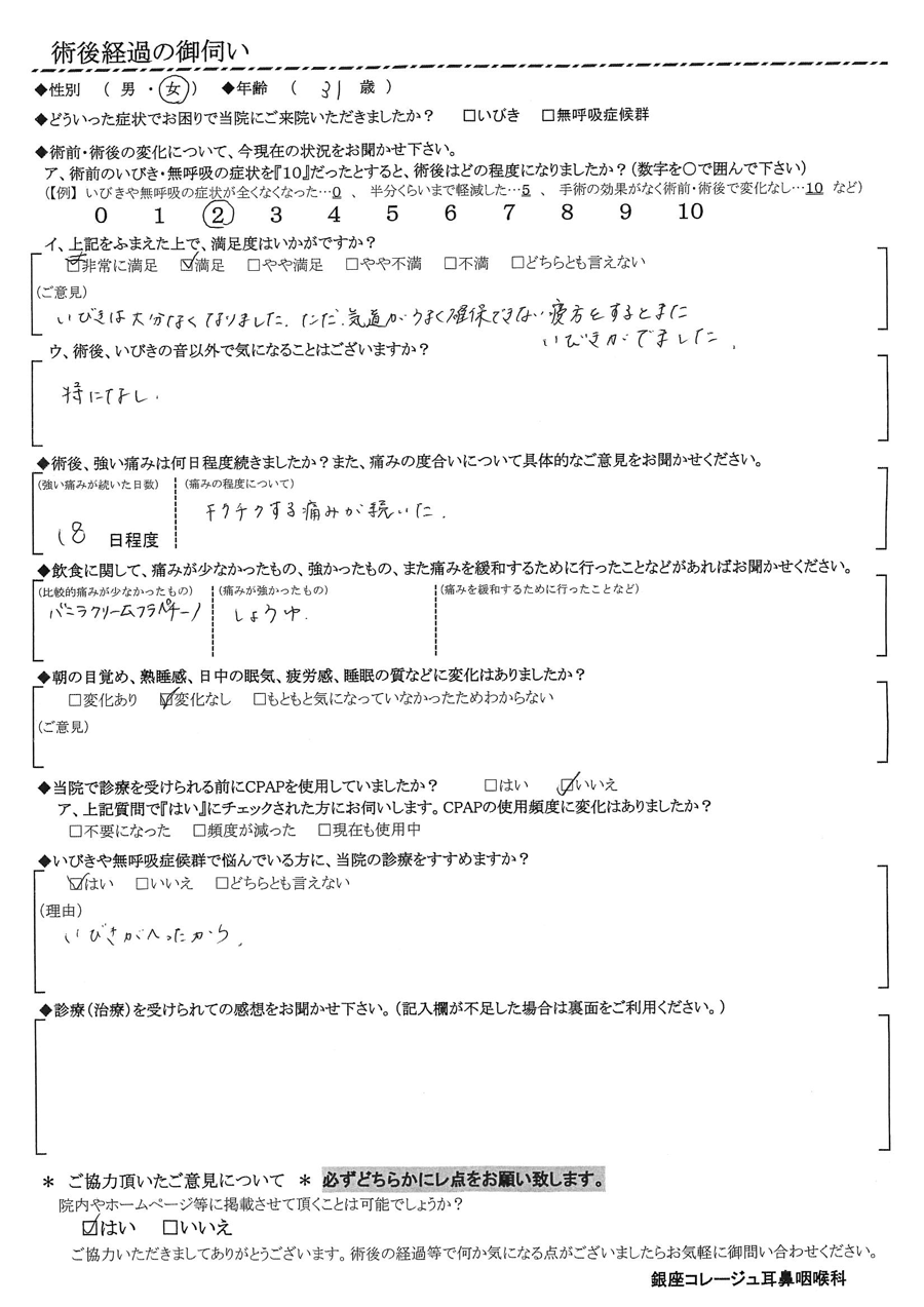 術後の患者様の感想 No.1094