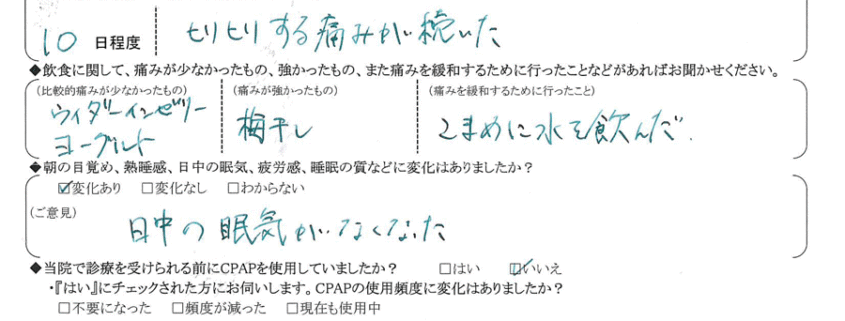 (痛みの程度について) ヒリヒリする痛みが続いた