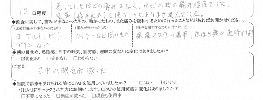 (ご意見) 日中の眠気が減った