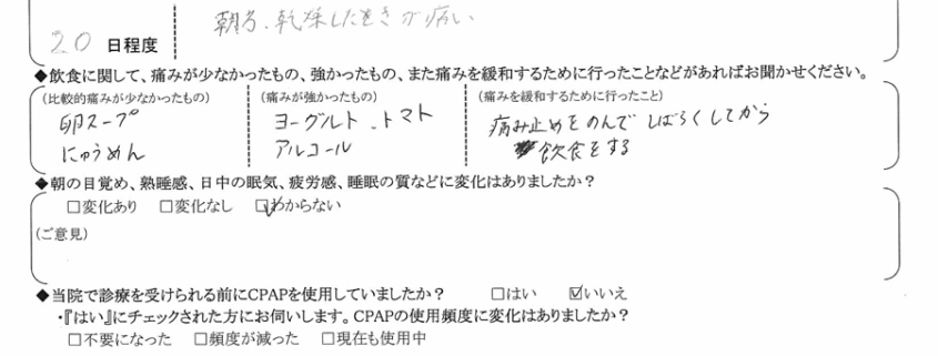 Q.飲食に関して、痛みが少なかったもの、強かったもの、また痛みを緩和するために行ったことなどあればお聞かせ下さい