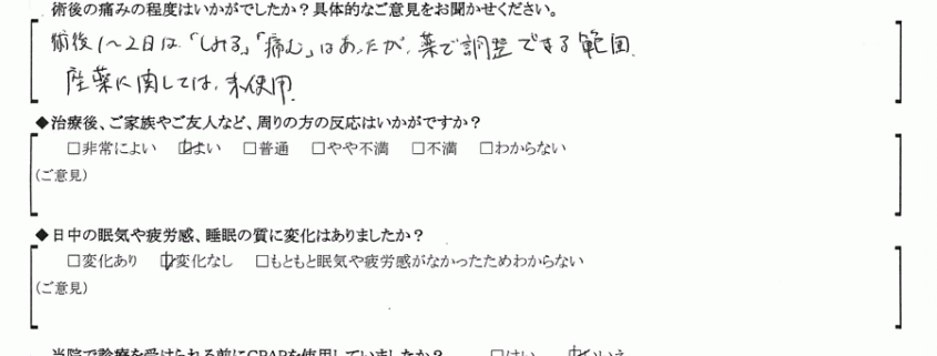 Q.術後の痛みの程度はいかがでしたか?具体的な意見をお聞かせください。