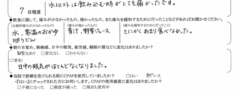 (ご意見) 日中の眠気がほとんどなくなりました。