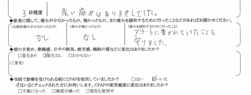 (痛みの程度について) 強い痛みはありませんでした。