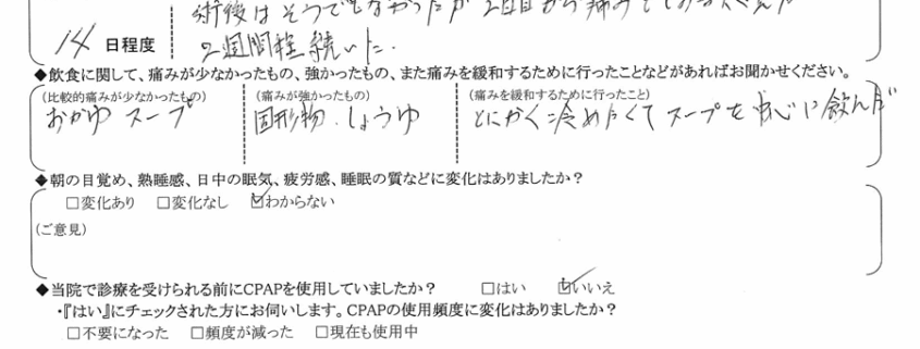 A:(痛みを緩和するために行ったこと) とにかく冷まして、スープを中心に飲んだ