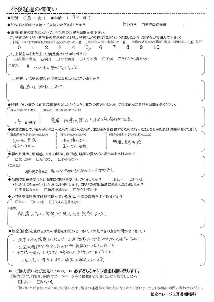 術後の患者様の感想 No.1218