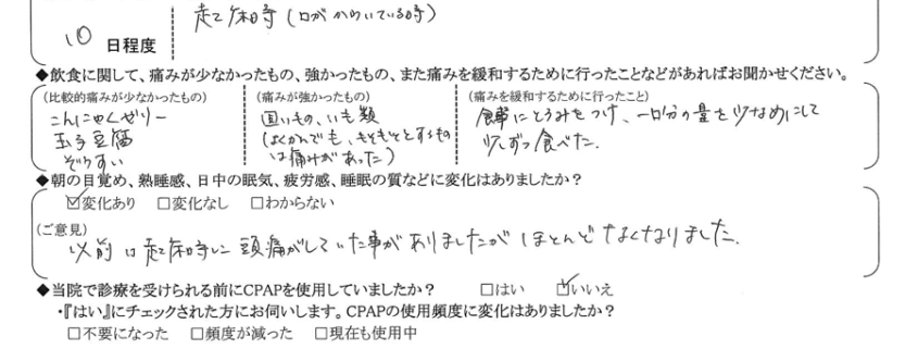 (ご意見) 以前は起床時に頭痛がしていた事がありましたが、ほとんど無くなりました。