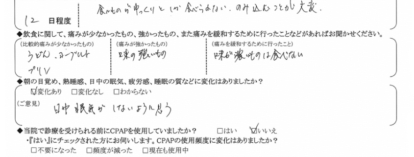 (痛みの程度について) 食べ物がゆっくりとしか食べられない。飲み込む事が大変。