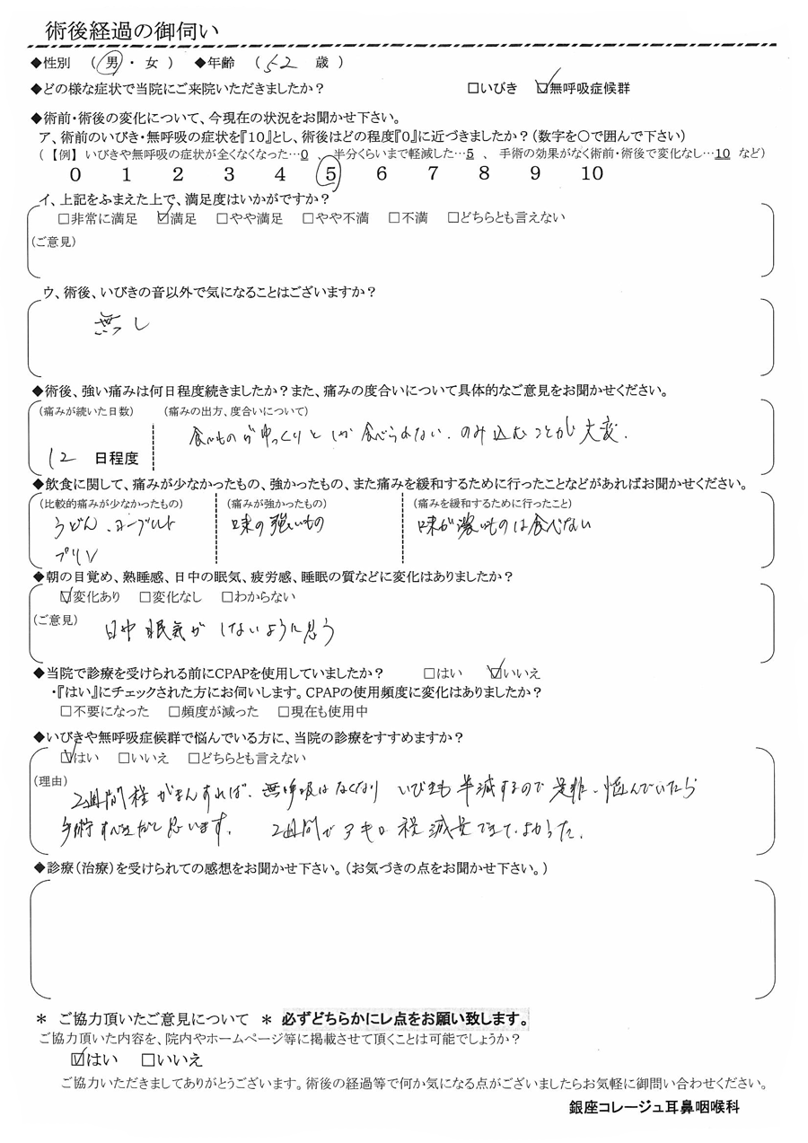 (理由) 2週間程、我慢すれば無呼吸はなくなり、いびきも半減するので悩んでいたら