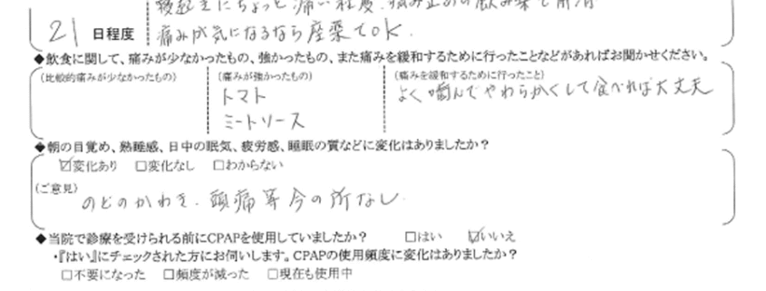 (ご意見) いびき等の心配が減り、気持ちも楽になった。
