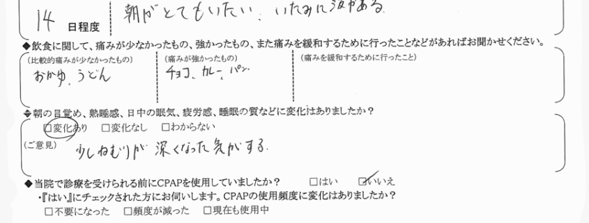 術後の患者様の感想 No.1308