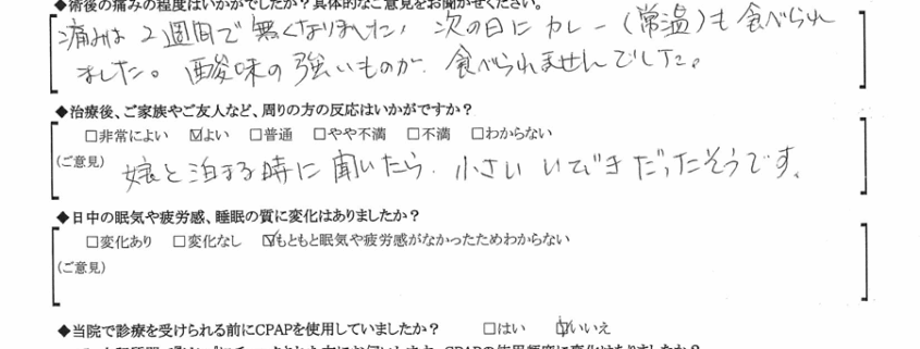 Q◆診療(治療)を受けられての感想をお聞かせ下さい。