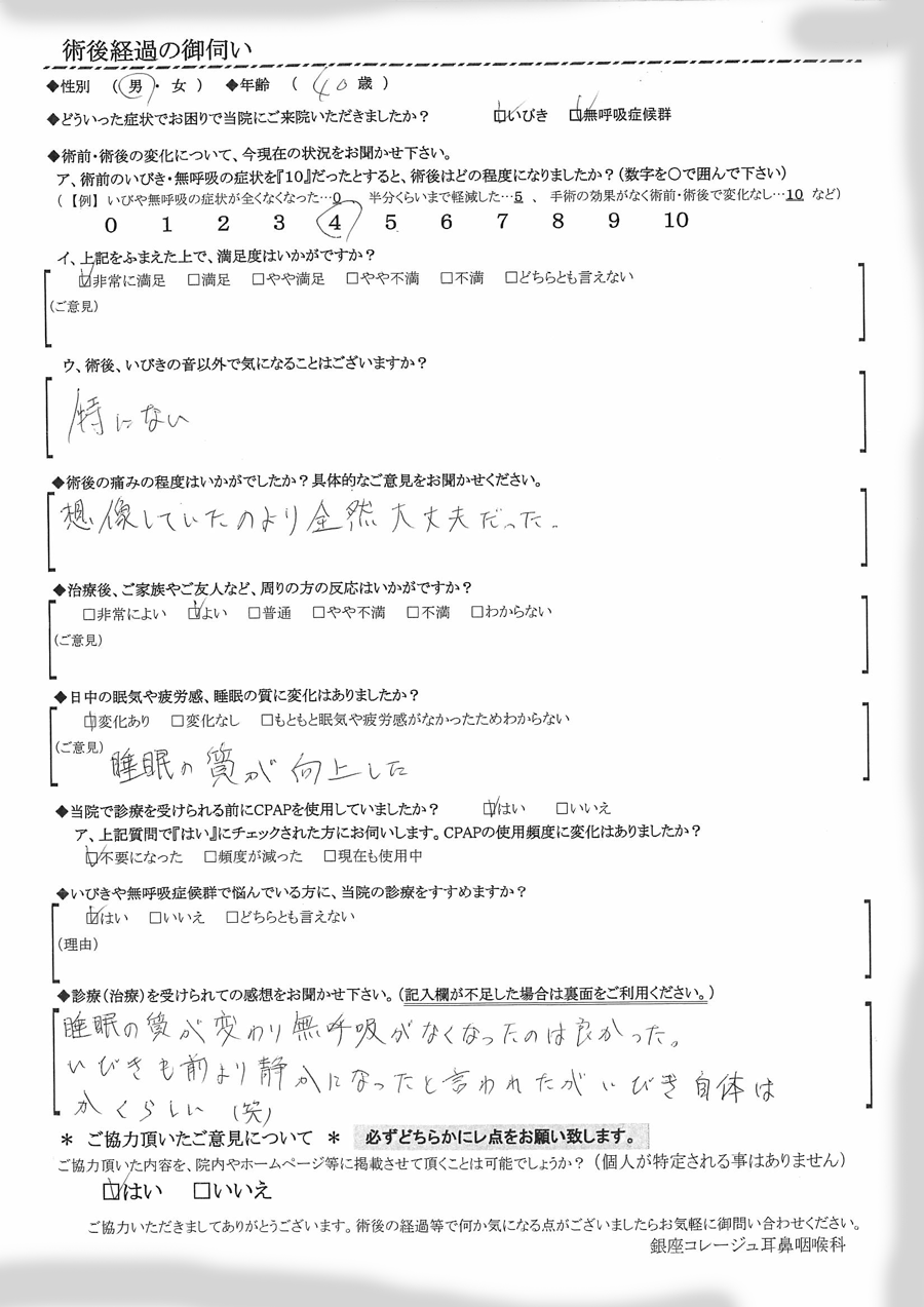 術後の患者様の感想 No.1330