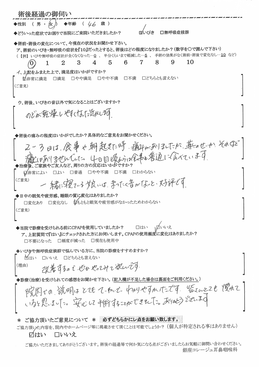 術後の患者様の感想 No.1348