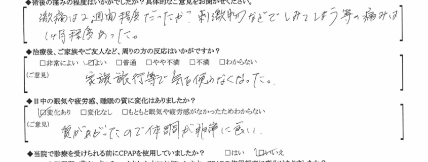 Q◆診療(治療)を受けられての感想をお聞かせ下さい。