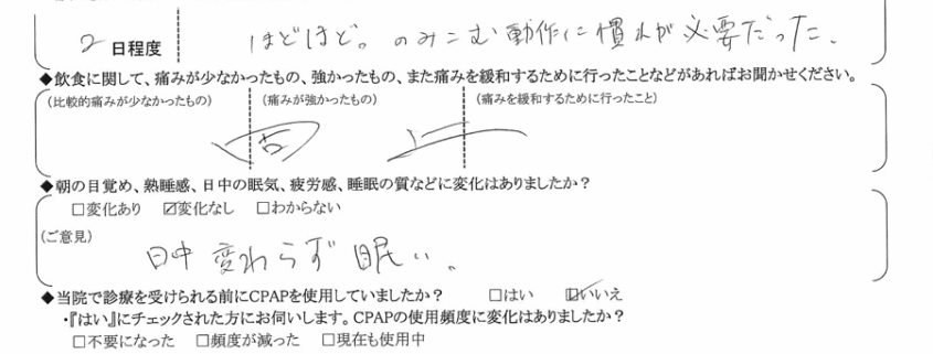 (ご意見) 日中、変わらず眠い。