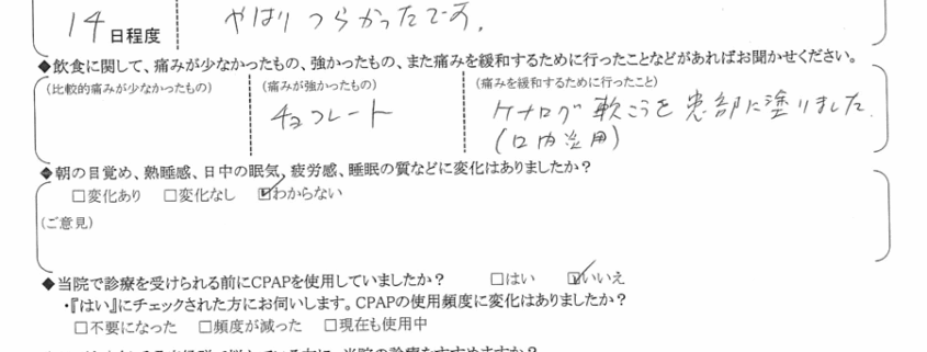 術後の患者様の感想 No.1366
