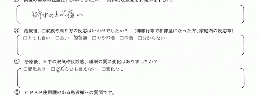 ウ、いびきの音以外で、術後気になる点はございますか?