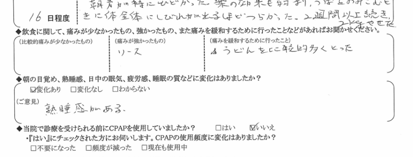 A:(痛みを緩和するために行ったこと) 比較的、うどんを食べた。