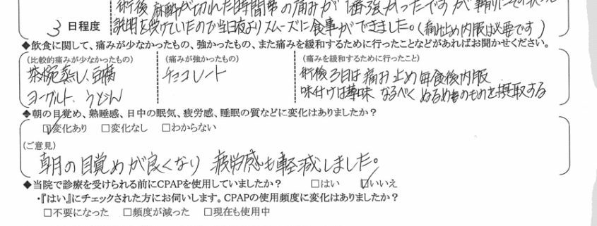 術後の患者様の感想 No.1376