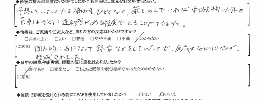 Q.診療(治療)を受けられての感想をお聞かせ下さい。