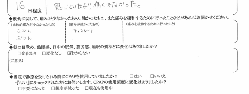 (痛みの程度について) 思っていたより、痛くなかった。